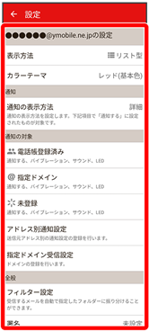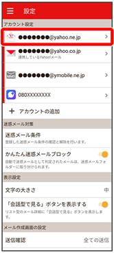 • Y!mobile メール設定画面で、Y!mobile メールのアカウントをタップ