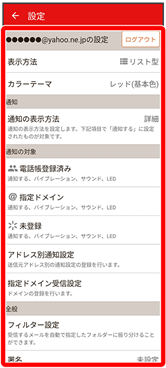 設定できる項目は次のとおりです。Yahoo!メールの設定も同じ項目です。