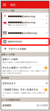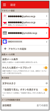 • Y!mobile メール設定画面で、+メッセージのアカウントをタップ