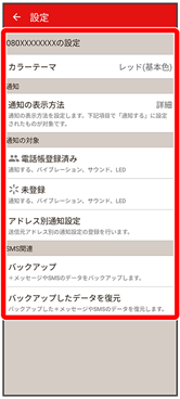 バックアップ +メッセージやSMSのデータをバックアップします。