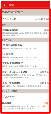 アカウント設定 メールアカウントの設定ができます。詳しくは、「Y!mobile メールの設定」「MMSの設定」「SMSの設定」「+メッセージの設定」を参照してください。