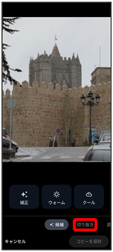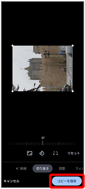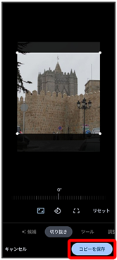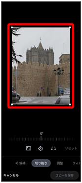 - 切り出す枠をピンチイン/ピンチアウト/ドラッグして、サイズ/位置を調節