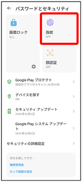 - 指紋センサーに指を触れたまま指紋の登録や認証を開始すると、起動できない場合があります。指を離し、再度操作してください。