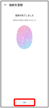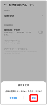 - 続けて別の指紋を登録する場合は、指紋を登録をタップします。