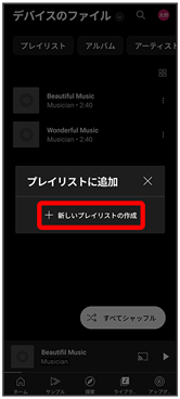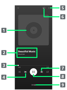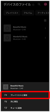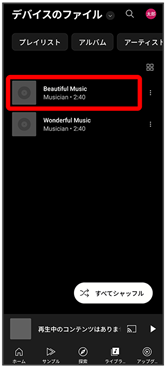 公式アルバムやミュージックビデオなど幅広い音楽コンテンツが楽しめます。ここでは内部ストレージに保存されている音楽を再生する操作を例に説明します。