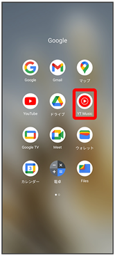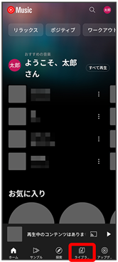 あらかじめ、Google アカウントでログインし、YT Music画面で右上のアカウントアイコンをタップ