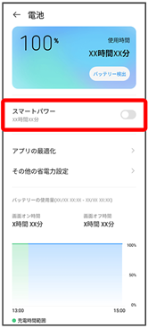 | XX% 使用時間XXXXX | 電池残量と使用可能時間(目安)を確認します。 | |