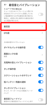 | ダイヤルパッドの操作音 | ダイヤルキーのタップ時に音を鳴らすかどうかを設定します。 | |