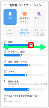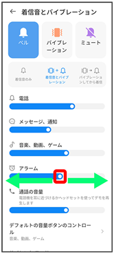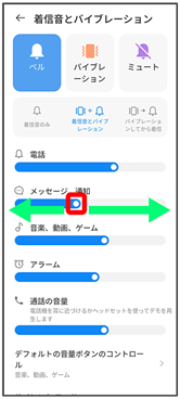 | メッセージ、通知 | メッセージや通知音の音量を設定します。 | |