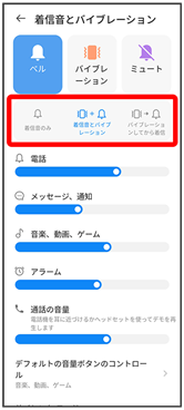 - 着信音のみ/着信音とバイブレーション/バイブレーションしてから着信