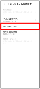 | セキュリティの詳細設定 | ・Smart Lock 画面ロックの解除方法をパターン/PIN/パスワードに設定しているとき、本機を持ち運んでいるかどうかや、信頼済みの場所/端末を確認して、自動的に画面ロックを解除するかどうかを設定します。 ・デバイス管理アプリ デバイス管理アプリの有効/無効の設定をします。 ・SIM カードロック SIMカードロックに関する設定を行います。 ・暗号化と認証情報 本機の暗号化や、認証情報について確認・設定します。 ・信頼エージェント 信頼エージェントを有効にするかどうかを設定します。 |
