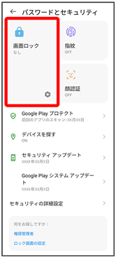 | 画面ロック | 画面ロックの解除方法を設定します。 | |