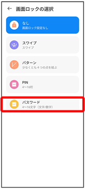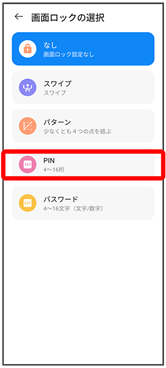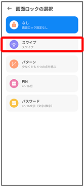 - 変更前の画面ロックの解除方法がなしまたはスワイプ以外のときは、ロックを解除してください。