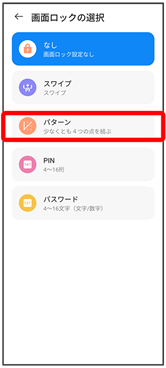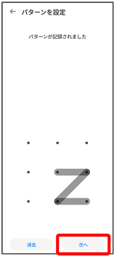 - パターンを指でなぞって画面ロックを解除するように設定する