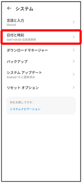 言語と入力、日付と時刻、バックアップ、リセット、システム アップデートなど、システムに関して確認や設定ができます。