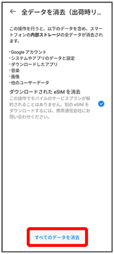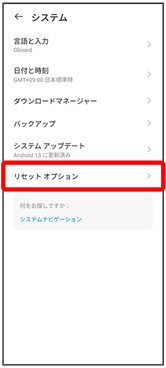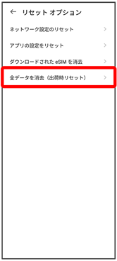 | リセット オプション | ネットワーク設定のリセットやアプリの設定のリセット、ダウンロードされたeSIMの消去、本機を初期状態にリセットができます。 |