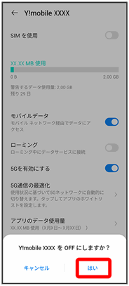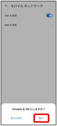 はいをタップするたびにeSIMの有効(