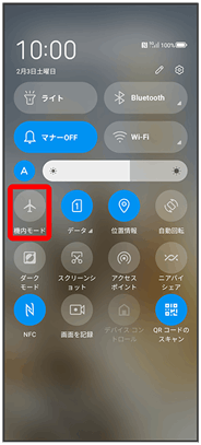 機内モードを設定しているときに、同様の操作を再度行うと機内モードが解除されます。
