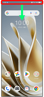 ステータスバーを下にフリック/スワイプすると、通知パネルを開くことができます。通知パネルでは、通知アイコンとその内容を確認できます。