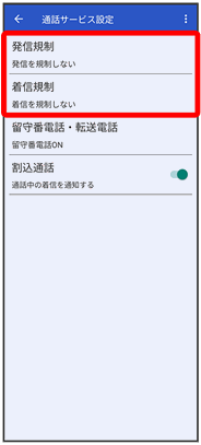 | 発信規制・着信規制 | 電話発着信やSMS送受信を状況に合わせて制限できます。 |