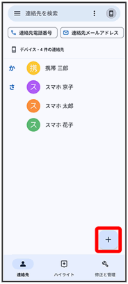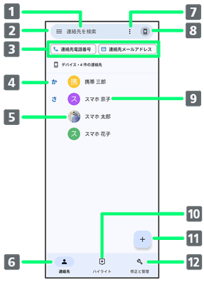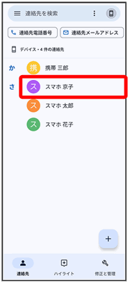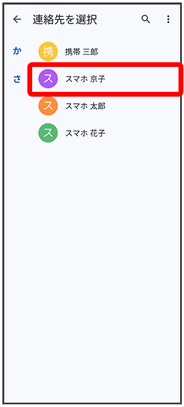 | タップした項目に該当する連絡先が表示されます。 | ||