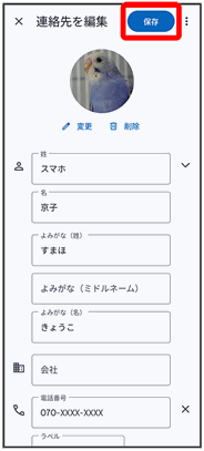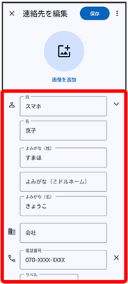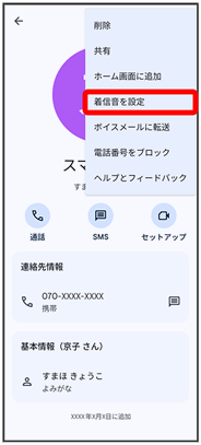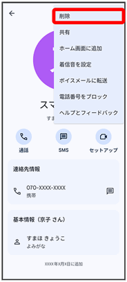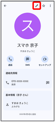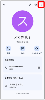 | タップすると、連絡先詳細画面が表示されます。 | ||