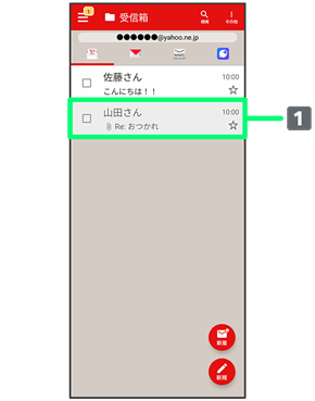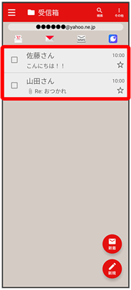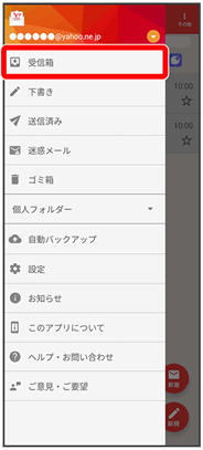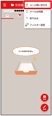 受信箱画面で下にフリック/スワイプしても新着メールの確認ができます。