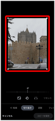 • ↓切り出す枠をピンチイン/ピンチアウト/ドラッグして、サイズ/位置を調節