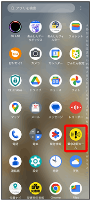 緊急速報メールの通知をタップして、緊急速報メールのメッセージ画面を確認することができます。