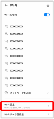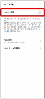 ホームネットワークなどの高品質の保存済みネットワークを検出したとき、Wi-Fiを自動的にONにするかどうかを設定します。