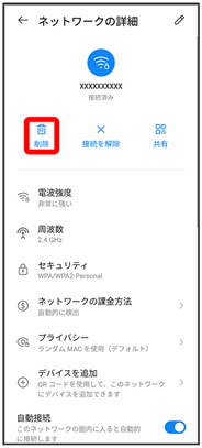 電波強度、周波数、セキュリティ、MACアドレス、IPアドレスなどが表示されます。