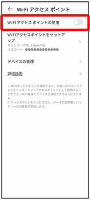 • ↓Wi-Fi アクセス ポイントの使用libero-flip_icon_463表示)