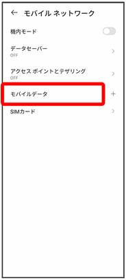 • SIMを2つ設定している場合は、モバイルデータをタップした後に、SIMを選択します。