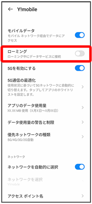 その他、必要に応じて通信方式、データローミングの設定を変更してください。