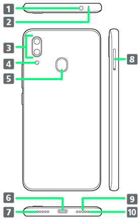 | 充電中や電話/メールの着信時に点灯/点滅します。 | ||