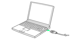 - パソコンのUSB端子に、PC接続用USB Type-CケーブルのUSBプラグを差し込む