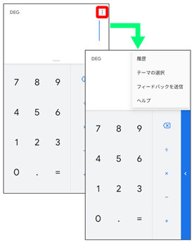 メニューのアイコンをタップすると、その画面で利用できる機能の設定や項目が画面に表示されます。