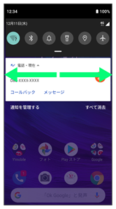 ステータスバーを下にドラッグすると、通知パネルを開くことができます。通知パネルでは、通知アイコンとその内容を確認できます。