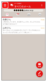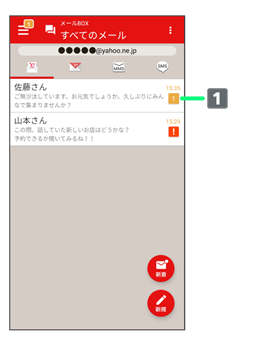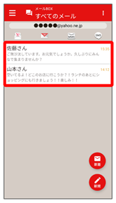 - 相手を限定せずに、迷惑メール以外の受信したすべてのメールを確認するときは、すべてのメールをタップします。
