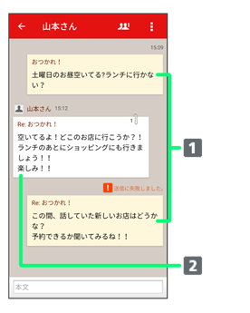 - 電話帳に未登録の相手とのメールを確認するときは、未登録をタップします。