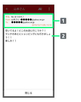 添付ファイルと操作しても保存できます。 - 添付画像のときは、メール送受信画面で画像をタップしても画像の保存画面が表示されます。