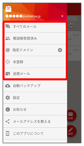 - すべてのメール/電話帳登録済み/指定ドメイン/未登録/迷惑メール