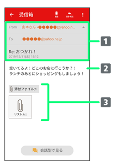 - 添付ファイルあり。タップすると添付ファイルの保存ができます。
