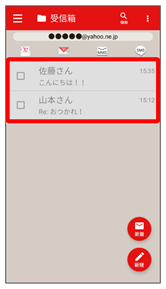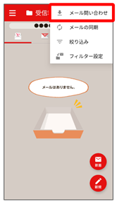 - 受信箱画面で下にフリック/スワイプしても新着メールの確認ができます。