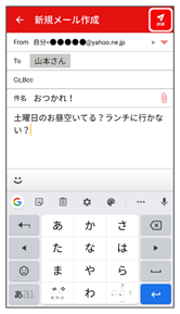 - CcやBccで送信したい場合は、Cc,Bccをタップして、