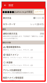 | 指定ドメイン | 指定ドメインに登録した相手からメールを受信したときの通知方法を設定します。 | |