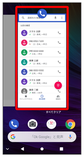 | 電話をかけたり、受けたりすることができます。海外に電話をかけるときも使用します。 発着信履歴を表示して発着信を確認したり、履歴から相手に発信することもできます。 |