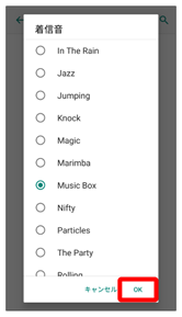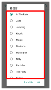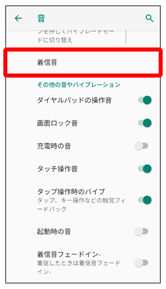 | 着信音 | 着信音や通知音、アラーム音の種類を設定します。 | |