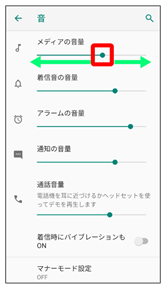 | メディアの音量 | 音楽や動画などの音量を設定します。 | |