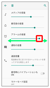 | アラームの音量 | アラーム音の音量を設定します。 | |